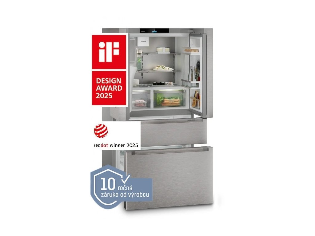 - French Door dizajn: Dve dvere na chladničke a dve zásuvky na mrazničke pre ľahký prístup.
