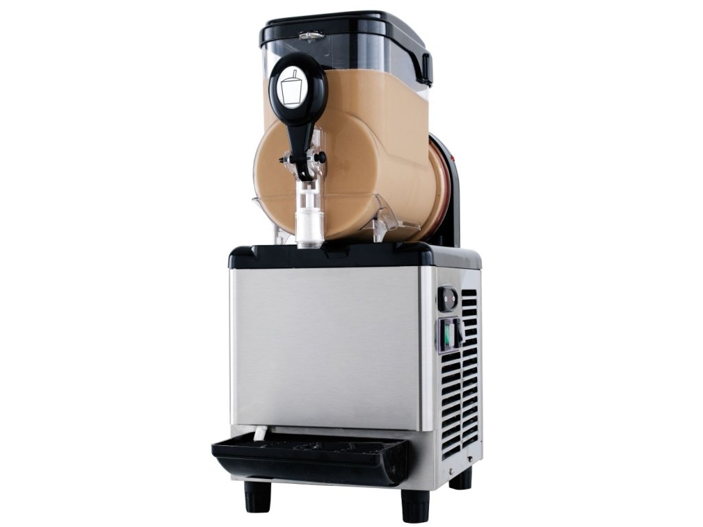 - Jedna nádoba s objemom 5 litrov: Ideálna pre menšie objemy výroby a rýchlu obmenu ponúkaných nápojov.