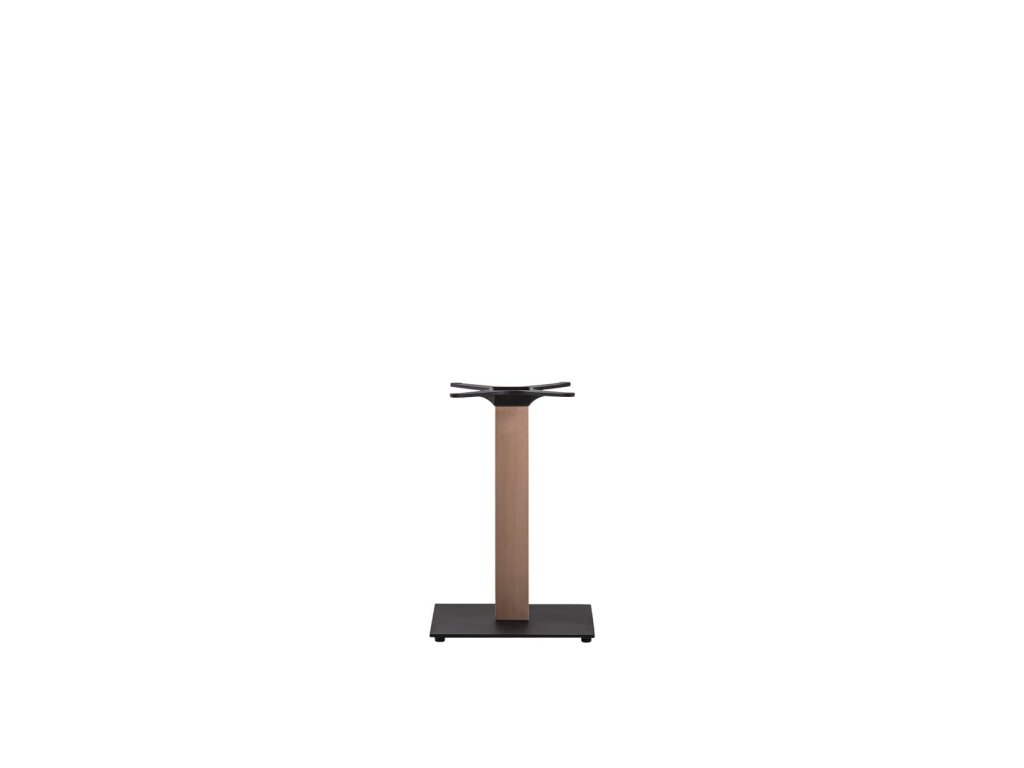 Podnož stola FLAT SQUARE 02 COFFEE je navrhnutá pre moderné kaviarne, lounge priestory a reštaurácie, kde je kladený dôraz na štýlový dizajn a pohodlie. Tento model disponuje plochým oceľovým podstavcom štvorcového tvaru s práškovým nástrekom, ktorý zaisťuje vynikajúcu stabilitu. Kombinácia oceľového podstavca s dreveným štvorcovým stĺpikom dodáva interiéru moderný a zároveň teplý vzhľad. Podnož je navrhnutá pre jednoduchú kombináciu s rôznymi stolovými doskami, pričom odporúčame použiť kompaktné laminátové dosky pre ich odolnosť a jednoduchú údržbu. Je to ideálne riešenie pre vybavenie komerčných priestorov.