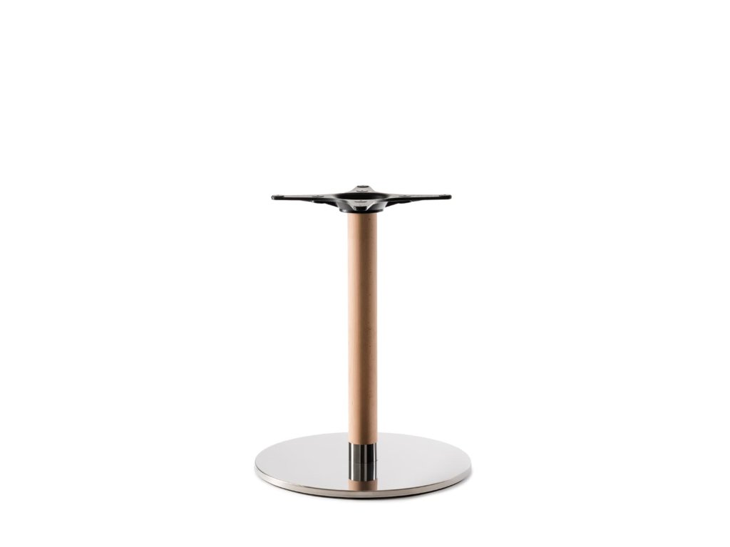 Táto stolová podnož je ideálnym riešením pre vytvorenie príjemného a štýlového prostredia vo vašej reštaurácii alebo jedálni. Leštená nerezová oceľ je nielen vizuálne atraktívna, ale aj mimoriadne odolná voči korózii a ľahko sa čistí, čo je nevyhnutné pre profesionálne gastro prevádzky. Kombinácia s dreveným stĺpom prináša do dizajnu prvok prírody a tepla.