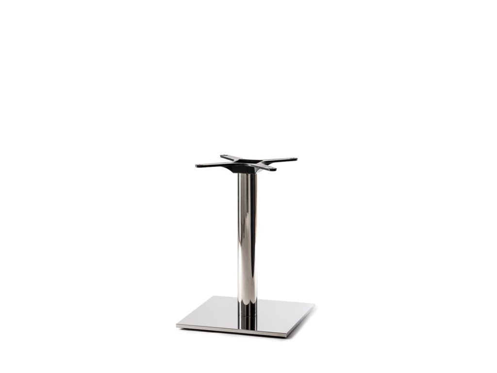 Podnož je vyrobená z vysoko kvalitnej nehrdzavejúcej ocele s nádhernou leštenou povrchovou úpravou, ktorá dodáva priestoru punc luxusu. Štvorcová základňa s rozmermi 420x420 mm poskytuje dostatočnú stabilitu pre menšie a stredné stolové dosky. Okrúhly stĺpik s priemerom Ø76 mm dopĺňa moderný vzhľad. Výška podnože je 600 mm, čo je ideálne pre konferenčné alebo príležitostné stolíky.