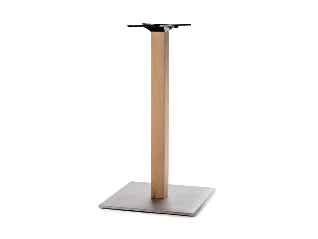 Stolová podnož INOX SQUARE BIG 02 BAR (SAT) kombinuje jednoduchý, geometrický dizajn s vysokou funkčnosťou. Táto podnož je ideálna pre moderné bary a reštaurácie, kde je kladený dôraz na čisté línie a eleganciu. Brúsená nerezová oceľ na základni a drevený stĺp vytvárajú harmonickú kombináciu, ktorá sa hodí do rôznych interiérov. Veľká štvorcová základňa s rozmermi 570x570 mm zaisťuje vynikajúcu stabilitu aj pre väčšie stolové dosky.