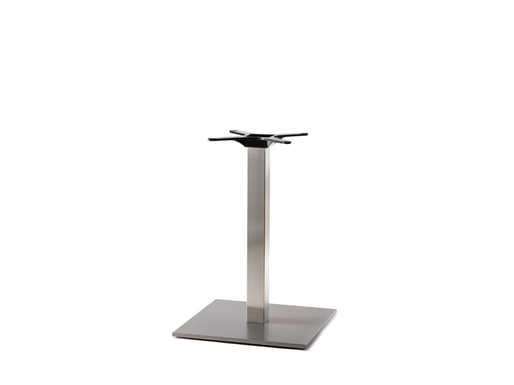 Táto podnož je celá vyrobená z kvalitnej nehrdzavejúcej ocele s matnou (brúsenou) povrchovou úpravou, ktorá je odolná voči odtlačkom prstov a ľahko sa udržiava. Štvorcová základňa s rozmermi 500x500 mm a štvorcový stĺp s rozmermi 70x70 mm vytvárajú stabilný a esteticky príjemný celok. Celková výška podnože je 720 mm, čo je štandardná výška pre jedálenské stoly.