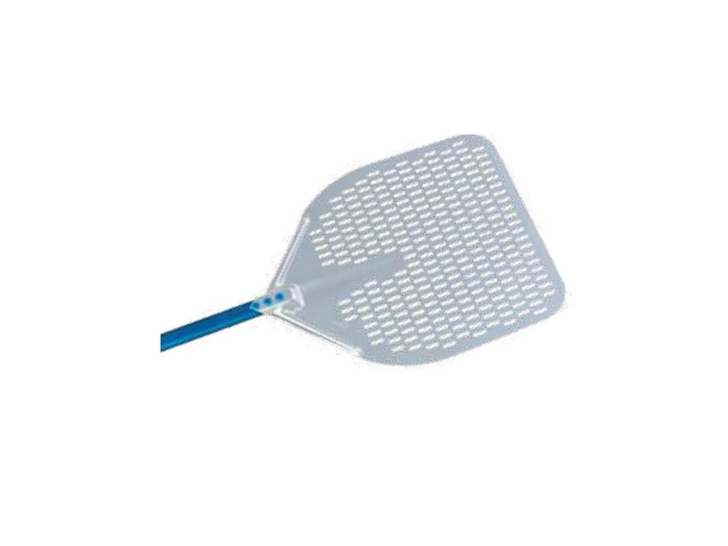 - Perforovaný povrch: Perforácia na povrchu lopaty umožňuje ľahké kĺzanie pizze, znižuje trenie a pomáha odstrániť prebytočnú múku alebo kukuričnú krupicu, čo vedie k čistejšiemu výsledku pečenia.