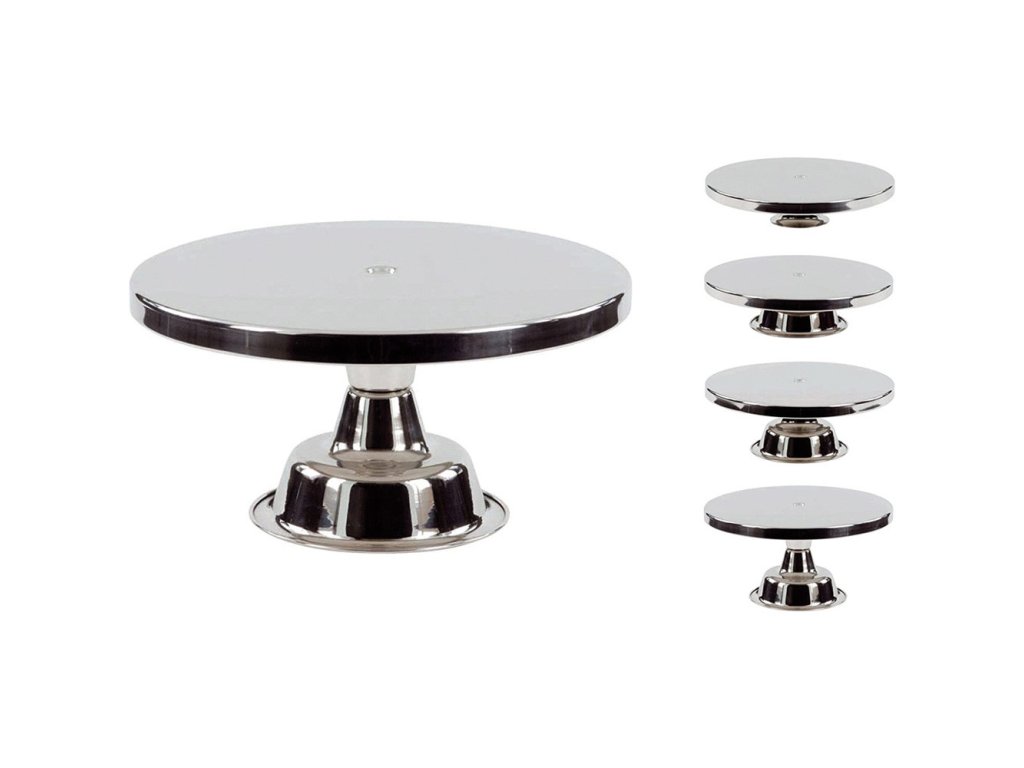 Táto sada stojanov s viacerými výškami je navrhnutá pre maximálnu flexibilitu pri prezentácii vašich cukrárskych výrobkov. Sada obsahuje štyri stojany s výškami 7 cm, 8 cm, 11 cm a 15 cm, ktoré sú umiestnené na kompaktnej základni s dĺžkou 25 cm. Táto konfigurácia je ideálna pre menšie priestory alebo pre vytvorenie viacúrovňových aranžmánov na pultoch kaviarní, cukrární alebo v rámci rautov. Stojany sú vyrobené z odolných materiálov, ktoré zaručujú dlhú životnosť a jednoduché čistenie, čo je nevyhnutné pre profesionálne gastro vybavenie.