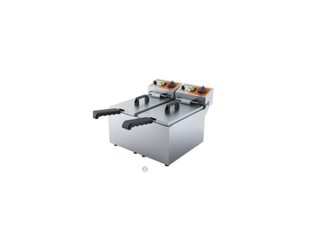 - Výkon: 2x 2 kW – zabezpečuje rýchle nahriatie oleja a stabilnú teplotu počas fritovania.