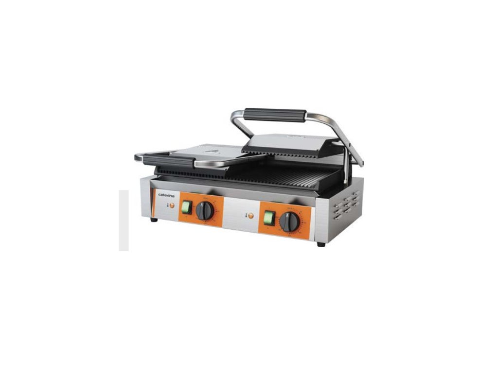 Profesionálny dvojitý kontaktný gril Caterina DOUBLE je navrhnutý pre prevádzky s vysokými nárokmi na rýchlosť a kapacitu. S dvoma nezávislými grilovacími plochami a ryhovanými liatinovými platňami zvládne prípravu veľkého množstva sendvičov, burgerov, steakov a iných grilovaných špecialít.