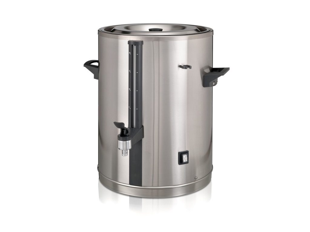 Termos VHG 20 je spoľahlivé profesionálne gastro vybavenie určené na udržiavanie teploty nápojov. S objemom 20 litrov a výkonom 120 W je tento termos ideálny pre reštaurácie, bufety a iné stredne veľké gastro prevádzky, kde je potrebné nápoje dlhodobo udržiavať teplé. Jeho konštrukcia z nehrdzavejúcej ocele s dvojitým plášťom zaisťuje vynikajúcu tepelnú izoláciu a energetickú účinnosť. Praktické prvky ako vodoznak, výpustný ventil a veko z nehrdzavejúcej ocele zvyšujú komfort používania v komerčnej kuchyni.