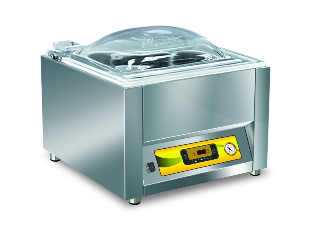 Vákuový baliaci stroj ECO 35 DIGIT je spoľahlivé profesionálne gastro vybavenie navrhnuté pre stredné prevádzky, ktoré vyžadujú efektívne vákuové balenie. Tento komorový baliaci stroj s deviatimi programami a funkciou marinovania je ideálny pre reštaurácie a hotely.