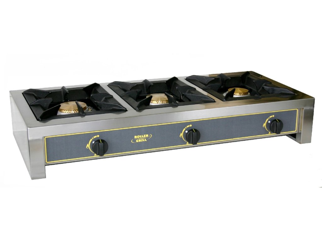 Zvýšte kapacitu a efektivitu vašej kuchyne s trojhorákovým plynovým varidlom GST 21 od značky Roller Grill. Toto profesionálne gastro vybavenie je navrhnuté pre náročné prevádzky, kde je potrebný silný a spoľahlivý zdroj tepla pre prípravu širokej škály jedál. Nezávislé ovládanie horákov poskytuje maximálnu flexibilitu.