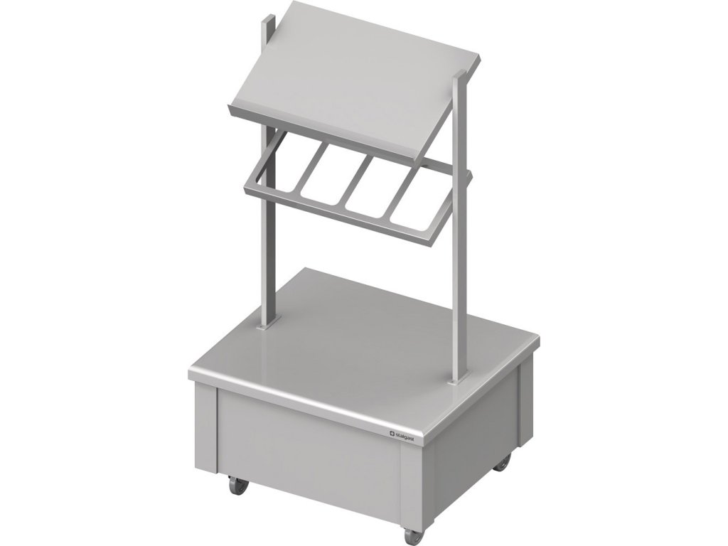Tento vozík na podnosy a príbor je navrhnutý pre efektívnu organizáciu a transport príborov, servítok a iných drobných doplnkov vo výdajných linkách. S kapacitou pre štyri gastronádoby GN1/4 umožňuje prehľadné usporiadanie a ľahký prístup k potrebnému vybaveniu.