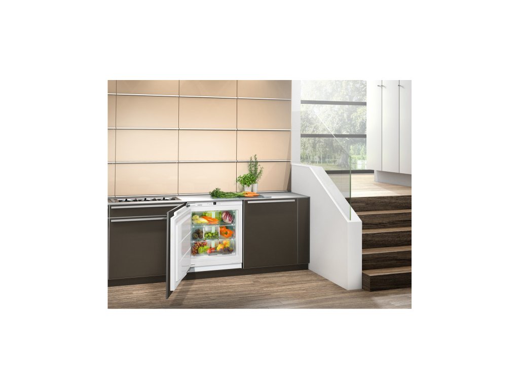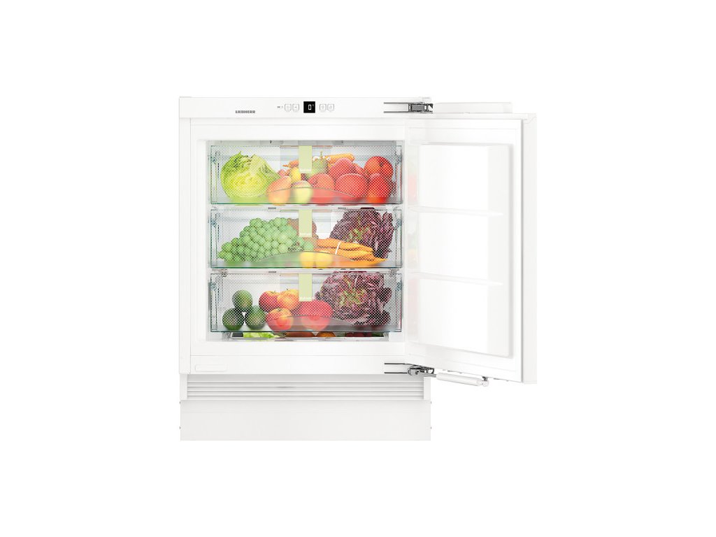 Táto vstavaná chladnička Liebherr SUIB 1550 Premium je navrhnutá pre dokonalé začlenenie do kuchynského nábytku a zároveň poskytuje špičkovú starostlivosť o potraviny. S objemom 80 litrov a funkciou BioFresh, ktorá udržuje teplotu tesne nad 0 °C a optimálnu vlhkosť, zabezpečuje dlhšiu čerstvosť ovocia, zeleniny, mäsa a rýb.